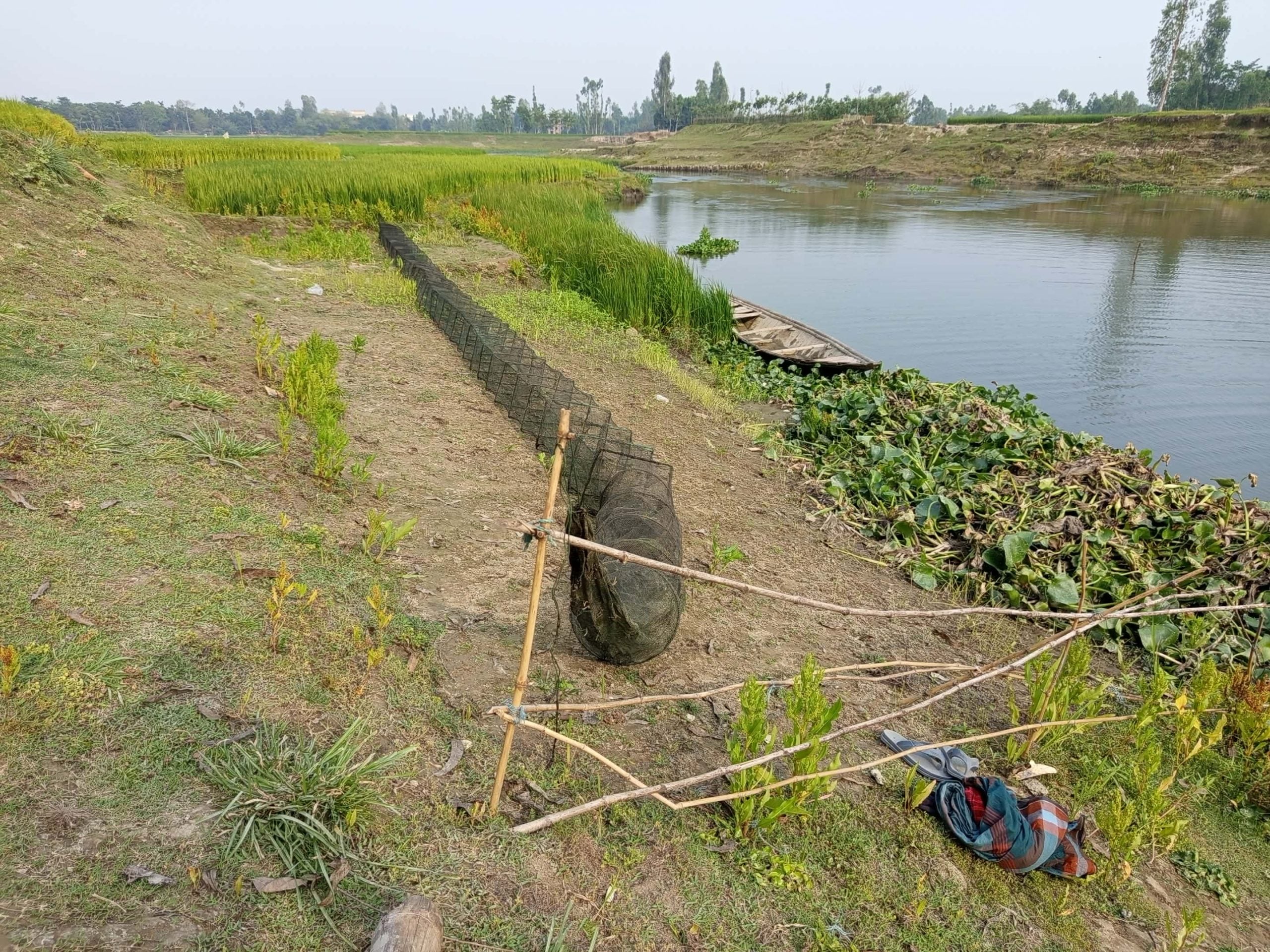 ফাঁদ পেতে মৎস্য শিকার চলছে।