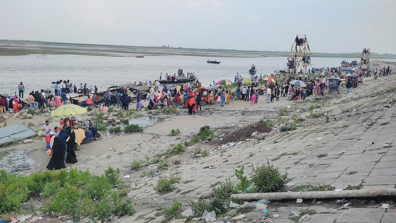 সরেজমিনে বৃহস্পতিবার বিকেলে দেখা যায়, দৃষ্টিনন্দন অবকাঠামো থাকলেও পুরো এলাকা প্রায় জনশূন্য। ঘাটপাড়ে বেশকিছু দোকানপাট থাকলেও ভরা বর্ষায় যেমন চঞ্চলতা থাকে তাও নেই। শুকিয়ে গেছে নদী। নদীর তল পেট দিয়ে বয়ে চলছে মৃদু স্রোতধারা। শুষ্ক মৌসুমে বালাসী পার হয়ে বিভিন্ন চরে যাওয়া মানুষদের কয়েক কিলোমিটারের দীর্ঘ পথ হেঁটেই পাড়ি দিতে হয়।